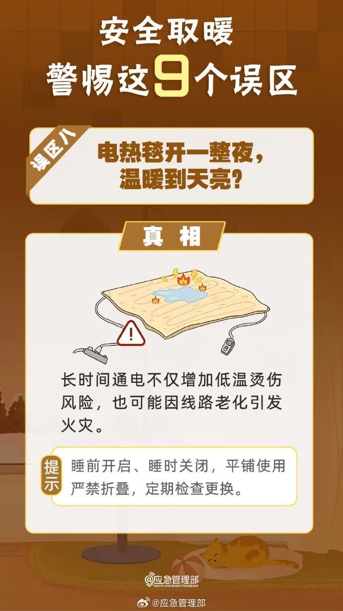 使用电热毯、电暖气、