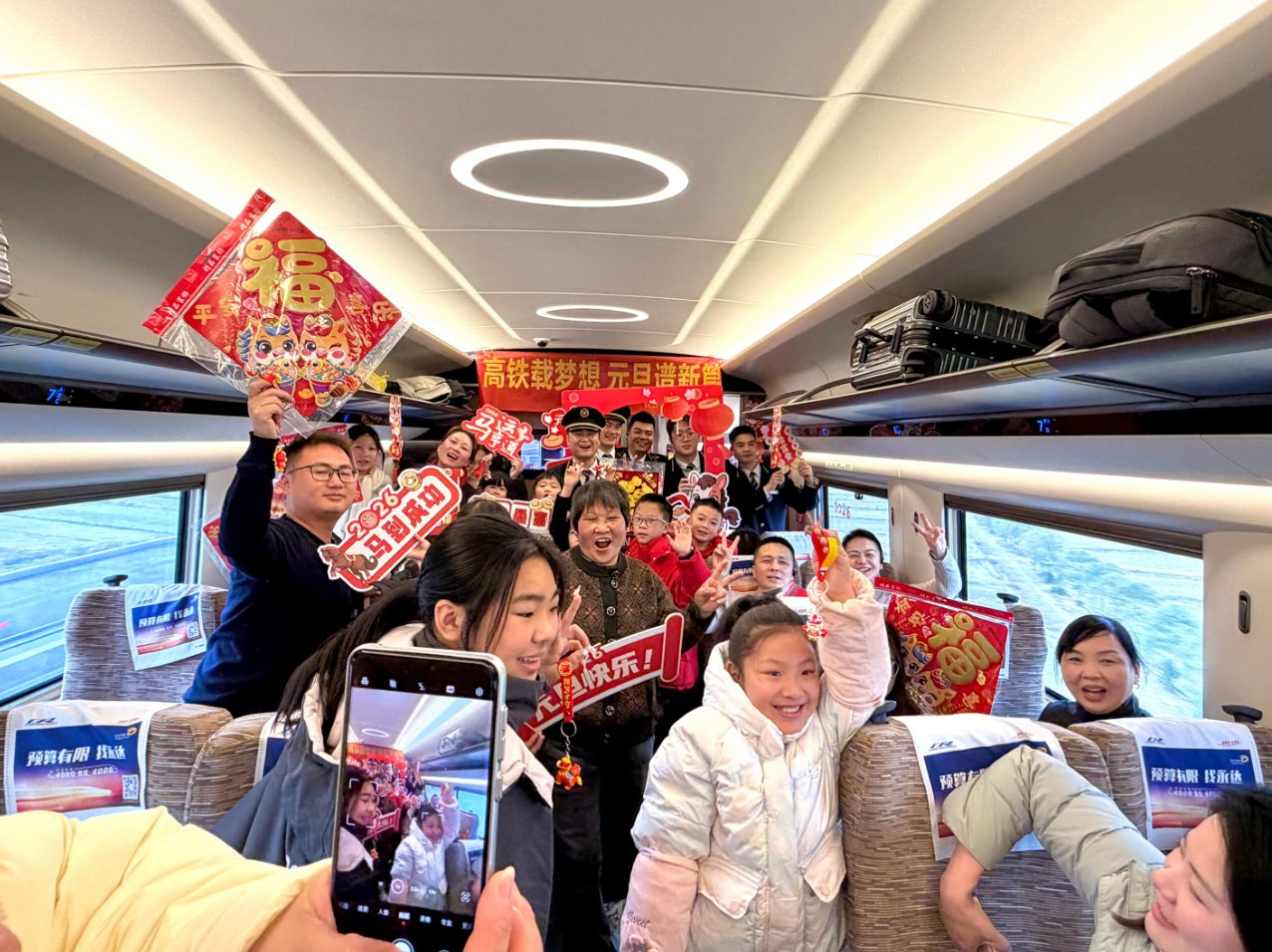 到站广播响起,旅客们默契起身整理行囊。窗外风景飞速掠过,窗内欢声笑语久久回荡。这趟满载年味与温情的元旦特别列车,不仅把安全知识送进旅客心间,更以一场有温度的旅途,为2026年的崭新篇章,写下了温柔而厚重的开篇。